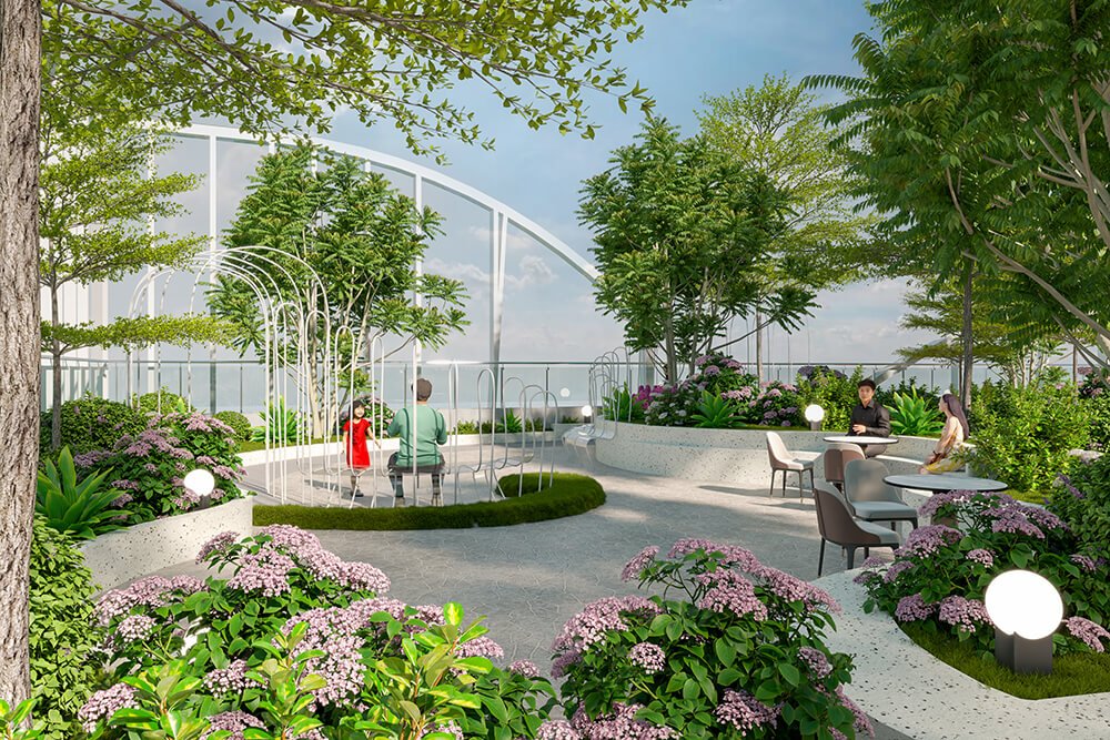 Dưới bàn tay của đơn vị thiết kế Ong&Ong, từng khối kiến trúc được tính toán theo tỉ lệ vàng, hài hòa nắng gió và phủ xanh mọi không gian. Từ mặt đứng đến sảnh chờ, hành lang, khu vườn thẳng đứng… tất cả đều mang hơi thở thiên nhiên, tạo nên “trạm bình an” cho mỗi cư dân – nơi tái tạo năng lượng và kết nối sâu sắc với bản thân.