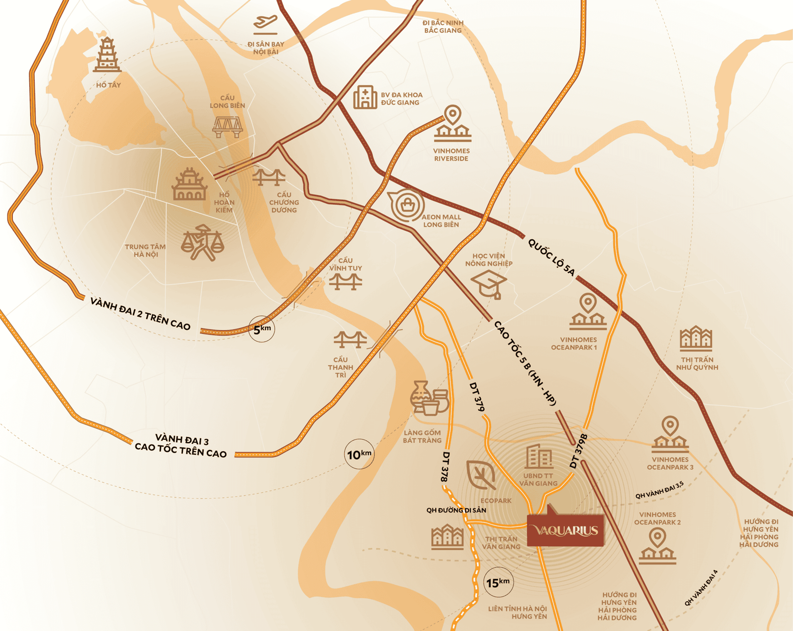 - 15km kết nối tới trung tâm TP. Hà Nội